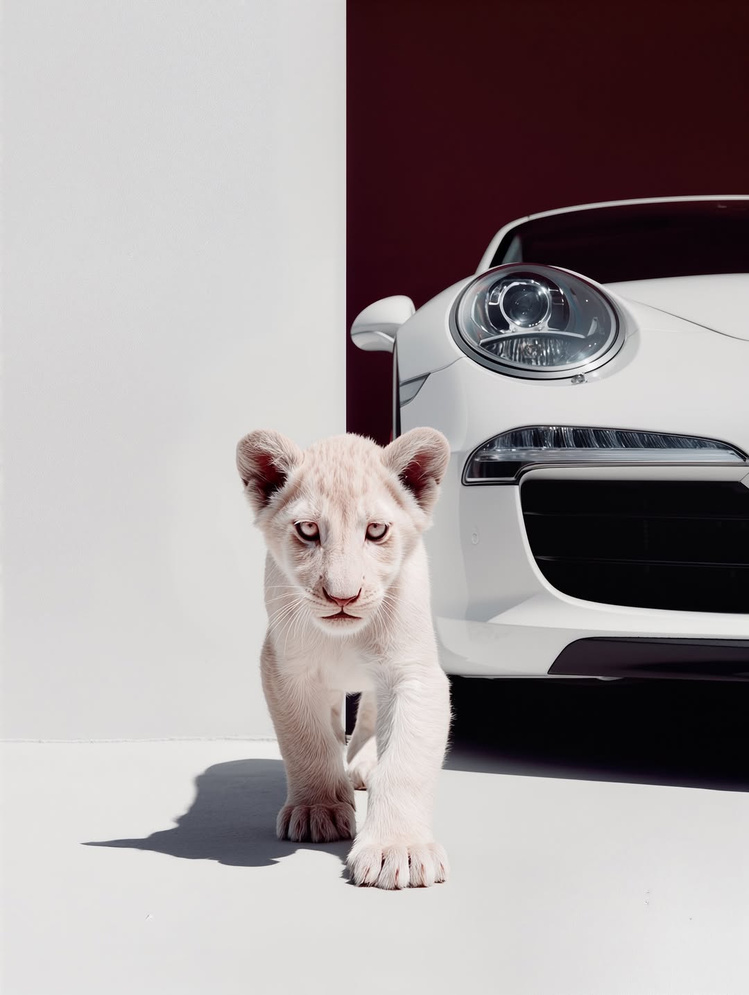Be the first to review “White Lion Cub Meets Porsche”