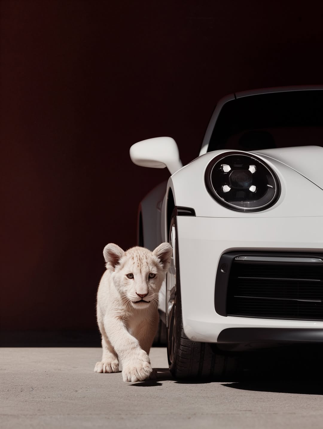 White Lion Cub Meets Porsche